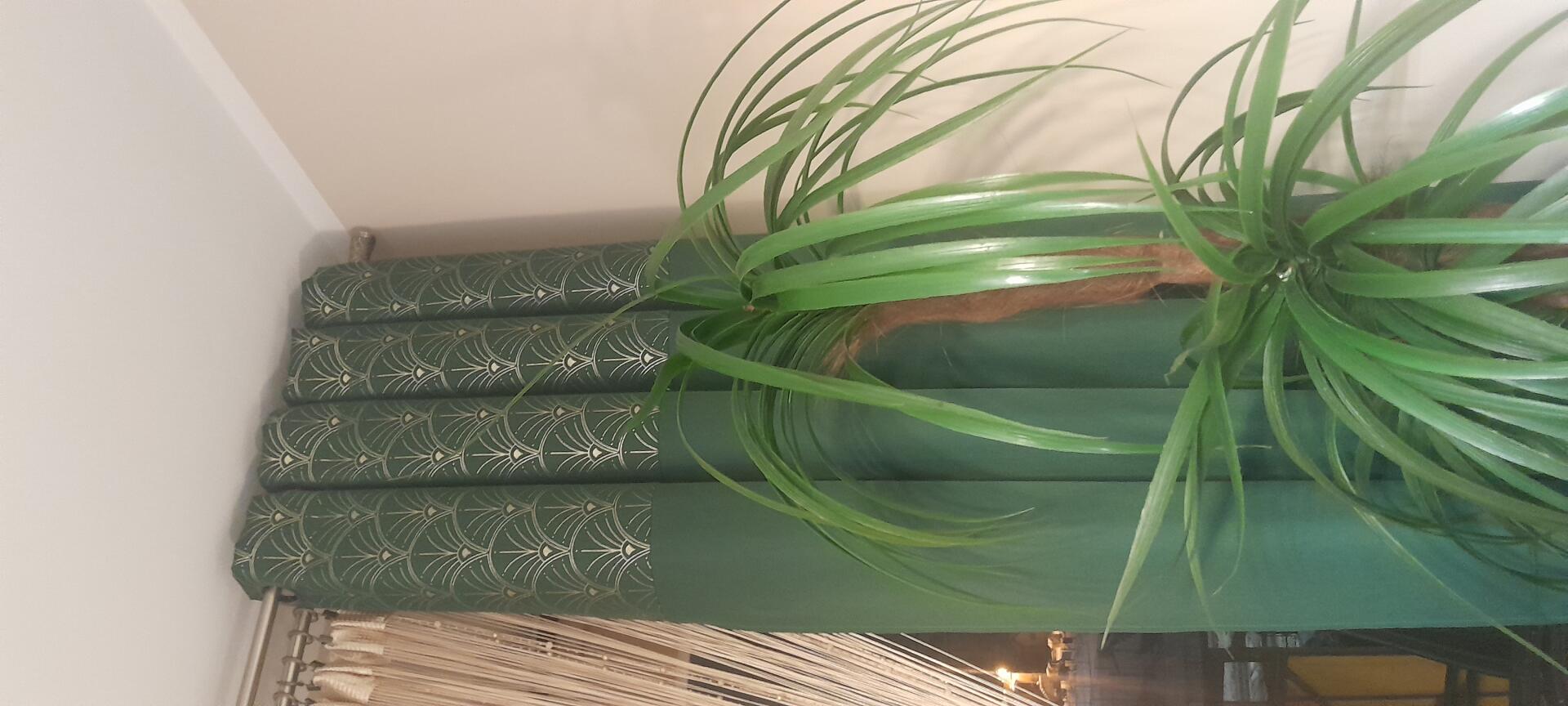 Na sprzedaż trzy ładne zasłony, kolor butelkowa zielen ze zlotym nadrukiem na górze I zlote przelotki . Rozmiar 140x250 , stan bardzo dobry ( brak śladów użytkowania). Cena za trzy sztuki